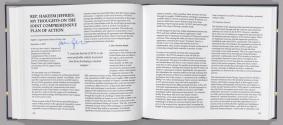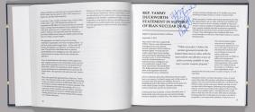 Physical DescriptionPhysical DescriptionA hardcover book featuring statements by the 162 Democratic Members of the House of Representatives that supported the Iran Nuclear Agreement. Each statement is then signed by its respective author with some adding personal notes to the President.