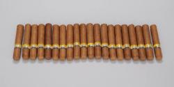 Physical DescriptionSet of twenty double robusto 52 gauge Cohiba Behike Cuban cigars each with a wrapped brand band at the end. The cap is twisted. The band has the brand name and "Habana, Cuba" underneath.