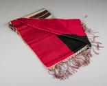Physical DescriptionPhysical DescriptionSilk scarf with salmon and green stripes on one side that are crossed by brown stripes of varying widths. The other side has red and black stripes that are crossed by black stripes. The short ends have salmon, green, red, and black tassels.
