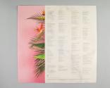 Physical DescriptionVinyl record in a pink sleeve with cover depicting the artist posing in a purple outfit in front of a white marble circle with birds of paradise flowers surrounding it and her name at the bottom in white. Inner sleeve is pink with a picture of bird of paradise flowers and marbled backing behind the lyrics on one side and credits on the other. Label of the record is pink with white marble print.