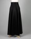 Physical DescriptionPhysical DescriptionBlack circle cut floor length skirt with a silver-toned metallic lining on the inside and pockets.