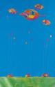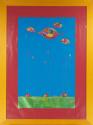 Physical DescriptionPhysical DescriptionBright surrealist painting depicting four flying figures with patchwork designs in a solid blue sky that has balloons. At the bottom of the painting there is a stripe of green grass with three domed shapes that the balloons are attached to. Throughout the grass there are spots of colorful figures. The largest and central flying device has the words "Obama" and "USA" painted on it.
