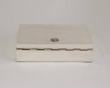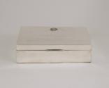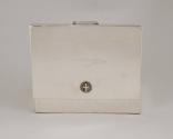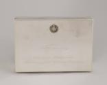 Physical DescriptionPhysical DescriptionPolished silver-toned metal box with hinged lid and wooden interior. The coat of arms of Greece is embossed at the top of the lid above the engraved signature and title of the President of Greece. A small metal tab is attached to the lid for opening.