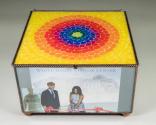 Physical DescriptionPhysical DescriptionHinged glass box with six different images, on each side that the First Lady has chosen herself. The top image is a copy of "Resurrection", by Alma Thomas; engraved copper plaque on inside presenting box to FLOTUS. Copper decorative edges on three sides, and copper ball feet.