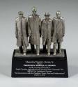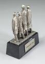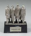 Physical DescriptionPhysical DescriptionReplica of February One statue that stands in North Carolina A&T State University. The statue depicts four men standing in a line, wearing trenchcoats. The men depicted are 'The Greensboro Four' who staged a sit-in at a diner to protest segregation: David Richmond, Franklin McCain, Ezell Blair Jr., Joseph McNeil. The silver figures stand on a black marble base. Text is printed in silver on the front of the base, and there is a silver metal plaque attached to the reverse of the base. There are inscriptions on the reverse of the metal statue.