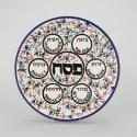 Physical DescriptionPhysical DescriptionA hand painted Passover Seder plate. The plate is white with a blue rim and decorative blue, pink, light blue, yellow flowers and green leaves. In the center is the Hebrew spelling of Pesach (Passover) in a circle, surrounded by smaller circles with the traditional Seder plate components written in Hebrew and English translations.