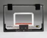 Physical DescriptionMiniature basketball hoop (.a), ball (.b), and net (.c), for use on the back of a door. The hoop is comprised of an acrylic backboard and orange steel hoop with detachable white nylon net. On the reverse side are two "L" shaped brackets for securing the hoop to a door. The foam POOF brand basketball is green and purple with a textured surface.