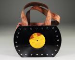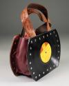 Physical DescriptionPhysical DescriptionPurse made from a vinyl record and its cardboard sleeve, "Fulfillingness First Finale" by Stevie Wonder. Sides and bottom of bag are made of a dark leather. The two straps are made of a repurposed leather belt with stamped with floral details. Front of bag is the record with label still attached and back of bag is the sleeve with an abstract collage of images including a piano keyboard, Grammy award, and Stevie Wonder's side profile.