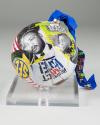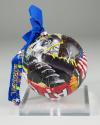 Physical DescriptionPhysical DescriptionLarge bauble ornament decorated with papier-mâché of images depicting various Atlanta based sports teams, celebrities, and landmarks. Images include Martin Luther King, Jr., Coretta Scott King, Atlanta Braves player Hank Aaron, a peach, and the SEC logo. Yellow paint frames some of the images. The blue ribbon at the top is embroidered with the word "rejoice" in yellow thread.