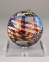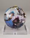 Physical DescriptionPhysical DescriptionLarge bauble ornament decorated with papier-mâché images that depict the Twin Towers, the events of September 11th, 2001, and patriotic imagery.