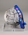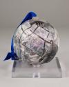 Physical DescriptionPhysical DescriptionLarge bauble ornament decorated with black and white papier-mâché images depicting the Lincoln Park Zoo. Images have a blue tone. The blue ribbon on the top is embroidered with the word "reflect" in yellow" and has decorative sequins.