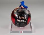 Physical DescriptionPhysical DescriptionLarge red metallic ball ornament decorated in various papier-mâché images that represent Atlanta, including the skyline of the city, a peach, Coca-Cola, the Braves, and Reverend Martin Luther King Jr. There is a blue ribbon attached to the cap at top embroidered in white "Renueve."