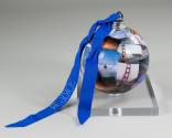 Physical DescriptionPhysical DescriptionThe large ball is decorated in papier-mâché images of the Golden Gate Bridge. The blue ribbon on top is stitched with white thread.
