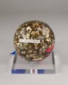 Physical DescriptionPhysical DescriptionLarge ball ornament decorated in papier-mâché images of the Holiday Motel in Las Vegas, Nevada. The other side bears the image of the Nevada quarter. There is a black ribbon with gold, red, and green geometric patterns adhered around the circumference. The blue ribbon on top was stitched with white thread.