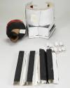 Physical DescriptionMulti-component cardstock and paper model of a proposed cap for the Deepwater Horizon oil rig. Model disassembled. Includes black well head with red tape details (.a), white cap tube that is hinged at the back (.b), four black folded paper "arms" (.c-.f), and eight small rolls of white paper (.g-.n). Pale yellow sticky notes attached to parts (.a) and (.b) indicate how the model should be assembled. Pieces of tape attached to black cap where the rolls of white paper were attached.