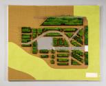 Physical DescriptionArchitectural model of the proposed White House Kitchen Garden including colored paper garden features and flower beds made from painted sponges atop a foam board (.a). Included are small wooden and plastic tables and benches for the model (.b-h), a small wooden trellis model (.i), a paper and wood model tree (.j), and a small bag of 14 plastic turquoise human figures (.k).