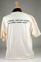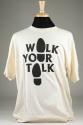 Physical DescriptionOff-white t-shirt with black screen-printed text, "Walk Your Talk" with foot prints for the A in Walk, U in Your, and A in Talk. On back: ... "deeds, and not words, are what count most."