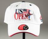 Physical DescriptionPhysical DescriptionA white baseball cap with red and blue details. "US OPEN is embroidered across the front with an icon of the American flag and a standing golfer. "2009 Bethpage Black" is embroidered along the left side.