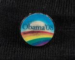 Physical DescriptionRound lapel pin with paper taped to the surface. Paper is printed with the Obama 2008 logo. The logo has been altered to have rainbow stripes and has printed above in the center of the button "Obama '08".