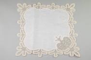 Physical DescriptionPhysical DescriptionSet of 12 off-white linen and lace placemats that have solid linen in the center and a floral lace pattern around the edges.