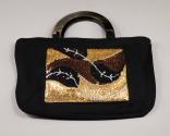 Physical DescriptionPhysical DescriptionBlack canvas purse with gold, black, and brown beads and sequins in vegetal design on the front with two handles. The interior is split into two pockets and closed with a zipper.