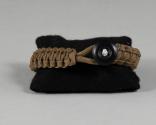 Physical DescriptionPhysical DescriptionBrown woven bracelet made with military parachute rigging cord and finished with a black military uniform button closure.