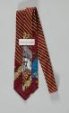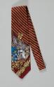 Physical DescriptionMaroon tie with yellow stripes. At the tip is a gray stage curtain with a ship sailing out from behind it.