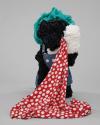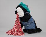 Physical DescriptionPhysical DescriptionA Bo Obama holiday sculpture made out of black and white ribbon. The dog sculpture is currently decked with a green beret with a pom-pom on the top and overalls with white buttons across the front. Bo is positioned sitting with one paw up and holding a red and white polka-dot blanket.
