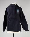 Physical DescriptionTwo navy blue pullover windbreakers with a half zip at the collar and a center zippered pocket. Over the proper left breast is a light blue and orange logo for the Gary Comer Youth Center.