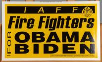 Physical DescriptionPhysical DescriptionTwo yellow and black campaign support signs with white border from Firefighters for Obama/Biden.