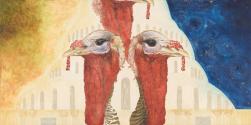 Physical DescriptionPhysical DescriptionA nine-panel painting that depicts three turkeys in front of the dome of the U.S. Capitol Building. The left side of the painting is yellow and orange, depicting a sunrise. The right side of the painting is blue with a moon. Both sides of the painting have dark branched trees with abstract depictions of people forming the trunk and tree limbs.