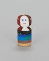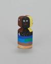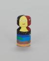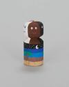 Physical DescriptionPhysical DescriptionA round handmade wooden figurine with five different colored faces. They are black, yellow, red, white, and brown. Each face is smiling. Below the faces is a scene of a starry night sky and below that is a pastoral scene of a brown field with a scattered trees and a clear blue sky. On one side there is a yellow sun an on the opposite side is a white crescent moon.