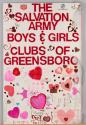 Physical DescriptionA large Valentine's Day holiday card made from two poster boards tied together using silver ribbon. The front of the card has a pink paisley background on which the card is addressed to Sasha and Malia with the words "Be Our Valentine" in pink and glittery silver paint. The interior of the card has various messages and Valentine's-related designs in paint and paper cutouts, as well as a message from The Salvation Army Boys and Girls Clubs of Greensboro. The back of the card has the senders' club name in red felt lettering.